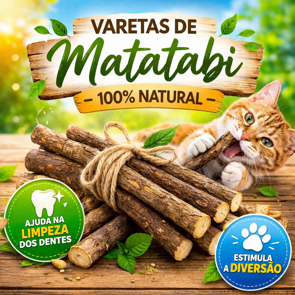 Bastão de Matatabi Natural para Gatos – Brinquedo Interativo e Antiestresse – (2, 5, 10 ou 15 Uni)