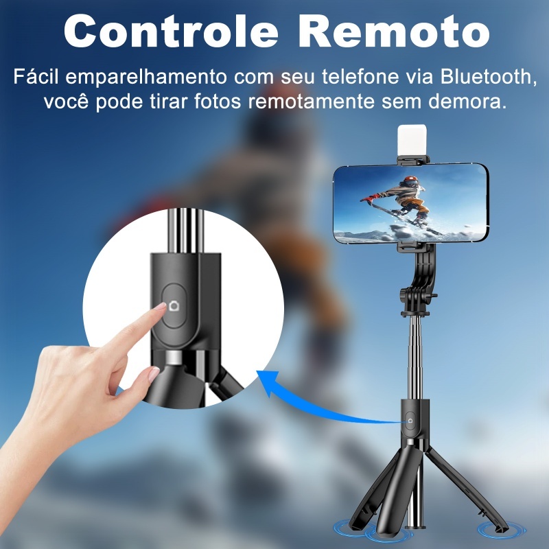 Bastão de Selfie Profissional com Luz de Transmissão Ao Vivo, Bluetooth, Controle Remoto e Tripé de