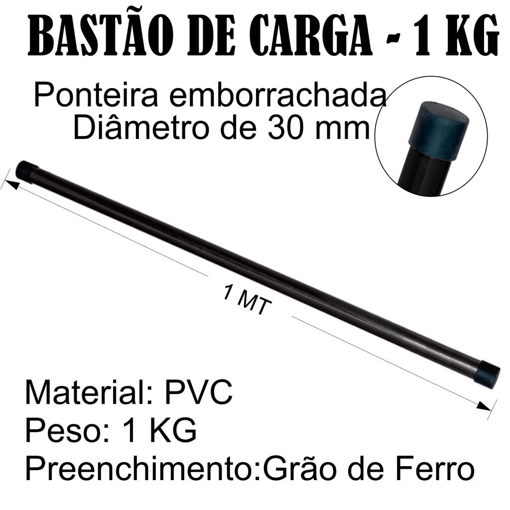 BASTÃO COM CARGA 1KG. O bastão serve para auxiliá-lo em exercícios de fisioterapia e prática de ginástica aeróbica. O peso depende de sua capacidade e do exercício a ser realizado. Os bastões auxiliam principalmente nos exercícios de correção postural. Características: Cor: Preta Sapata : PRETA Exercícios: Correção Postural, Fisioterapia e Exercícios Aeróbicos Dimensões: 100 x 3 cm. Preenchimento: Grão de Ferro ou Arreia. Informações: BASTÃO COM CARGA 1KG. PALAVRAS CHAVE: bastão de carga, peso, treino, musculação, fitness, exercícios, resistência, equipamento de treino, home gym, tonificação, emagrecimento, barra de peso, acessórios de fitness, força, mobilidade, treino funcional, saúde, ginástica, pilates, esportes,
