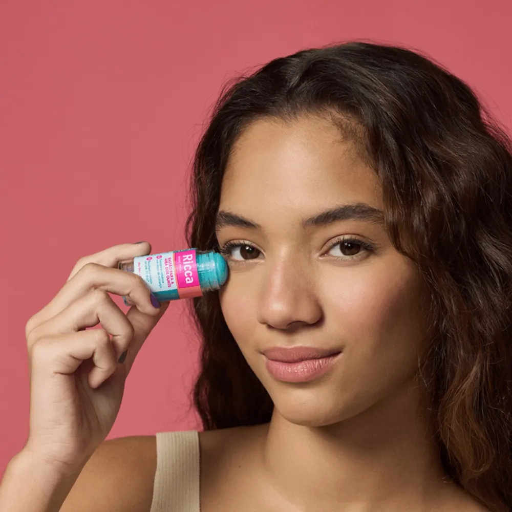 BASTÃO PARA A ÁREA DOS OLHOS RICCA MAGIC STICK 15G O bastão para os olhos Ricca Aloe Bela! tem ação multifuncional. Ele hidrata, refresca já que tem efeito geladinho e melhora a microcirculação da região das olheiras. Além disso, ajuda a suavizar os sinais visíveis de cansaço da pele, como manchas escuras, rugas e sensibilidade. Também aumenta o viço e a luminosidade da derme. Benefícios - Efeito geladinho - Suavização de olheiras - Amenização dos sinais de cansaço da pele - Dica de amiga: Guarde na geladeira para potencializar o efeito Modo de Uso Com a pele limpa e seca, aplique o produto diretamente na área ao redor dos olhos. Faça movimentos circulares e massageie suavemente a região. Deixe a derme absorver o produto e pronto! Recomendamos usar duas vezes ao dia, uma de manhã e outra à noite.