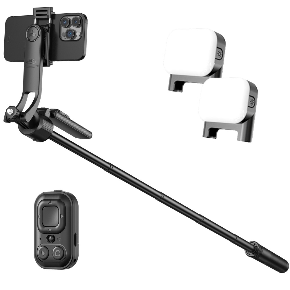 Bastão Selfie Kit Vlog C17: Tripé + Bastão Selfie Rastreamento IA LED Destacável Controle Bluetooth