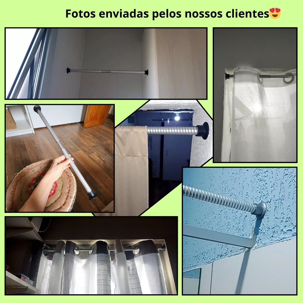 Bastão Varão Tubo Extensível para Cortina de Box Banheiro Ajustável em Alumínio Sem Furar Parede