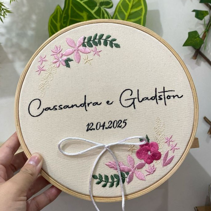 BASTIDOR BORDADO PORTA ALIANÇA * Bastidor Porta Aliança bordado à máquina * Bastidor de Madeira * Bordamos em Algodão Cru Personalizamos nomes, datas, frases e cores conforme a sua preferência ❤️ Não encontrou o modelinho que estava procurando? Converse com os nossos atendentes e nos envie uma foto, vamos analisar com muito carinho. Após a compra, informar via chat qual foi o modelo escolhido e as informações para incluirmos. Montamos uma arte antes de bordar 🥰
