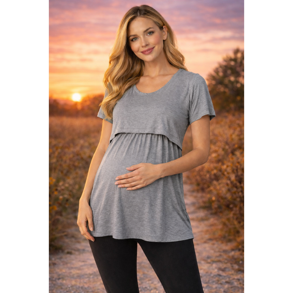 Bata gestante desenvolvida para unir conforto, praticidade e estilo em todas as fases da gravidez. Confeccionada em malha macia e leve, proporciona toque suave na pele e excelente caimento. Malha leve e confortável Modelo gestante e amamentação Corte que acompanha o crescimento da barriga Mangas curtas Ótimo caimento frontal e nas costas Ideal para uso diário O modelo possui corte abaixo do busto, que valoriza a silhueta e permite melhor adaptação ao crescimento da barriga, garantindo conforto durante toda a gestação. A parte frontal com sobreposição facilita o uso no pós-parto, sendo também ideal para amamentação.