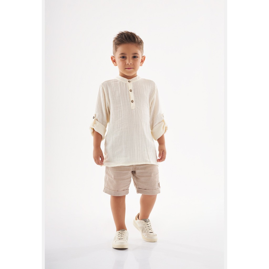 Bata infantil para meninos, confeccionada em tecido gaze de alta qualidade, possui uma composição em cotton que garante um toque suave e agradável à pele. Possui gola redonda e um peitilho com botões e caseados, além disso, as mangas contam com martingale, um detalhe charmoso que acrescenta um toque especial ao design.Fechamento: BotõesTecido: Bata: GazeComposição: 100% algodãoDecote/Gola: RedondoModelagem: JustaForro: NãoComprimento Manga: Longa