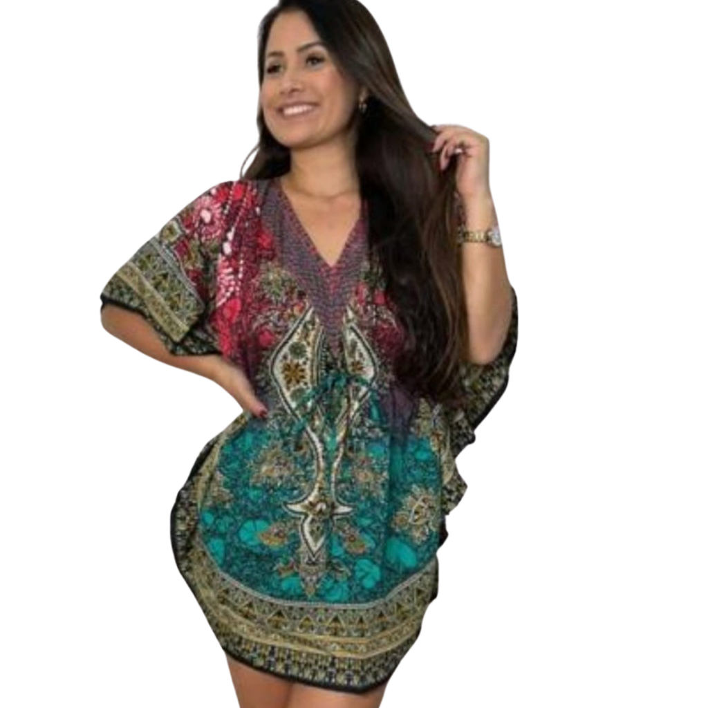Bata Kaftan Curta Saida de Praia Varias Estampas Confortavel Boho Chic