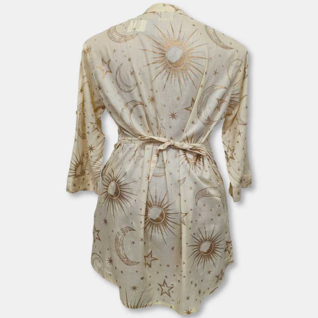 Bata Túnica Feminina Indiana Estampa Dourada Sol Lua Estrela