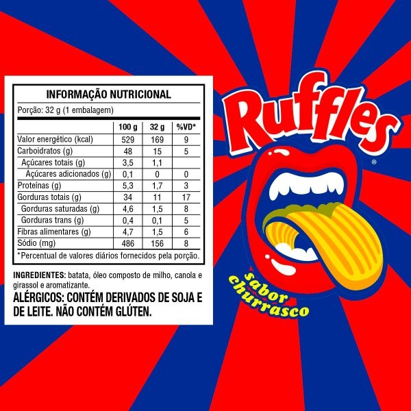 | Batata Frita Ruffles Ondulada Churrasco 32g Elma Chips este produto | R$ 6,99 | — | 4.9/5 | 6 |