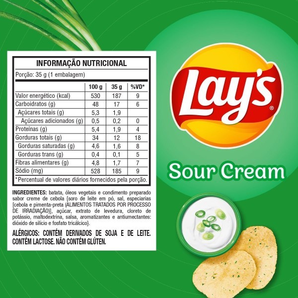 | Batata Lay's Sabor Sour Cream 35g Elma Chips este produto | R$ 8,99 | — | 4.9/5 | 5 |
