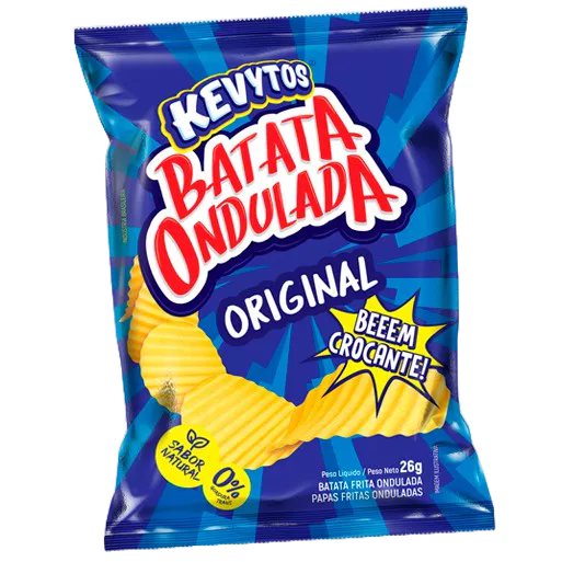 Experimente a batata ondulada Kevytos! Feita com batatas selecionadas, é deliciosamente crocante, ideal para um lanche ou um aperitivo que acompanha qualquer refeição. 3 sabores disponíveis: Original, Churrasco, Cebola e Salsa.