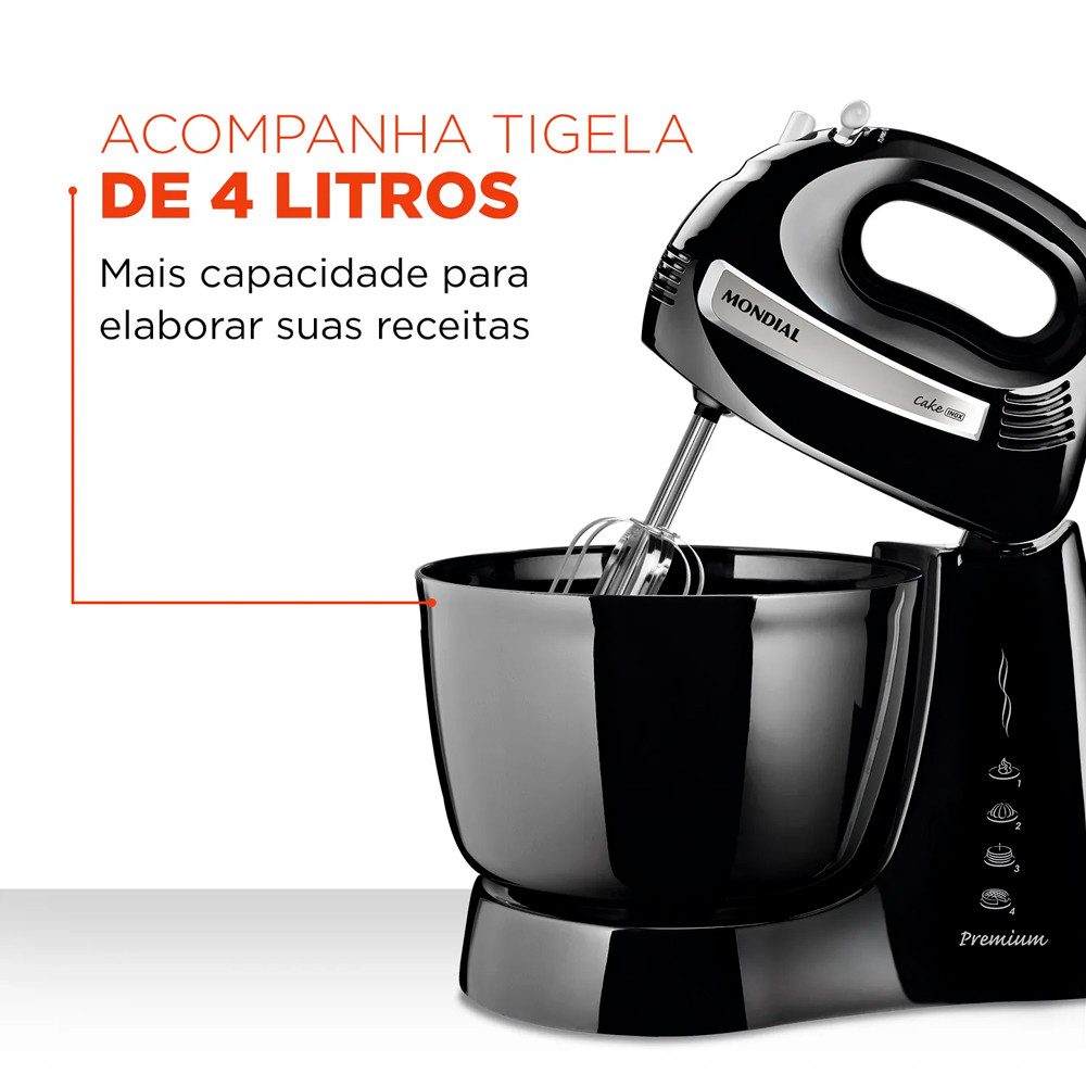 Batedeira Cake Premium, Mondial, 4 Velocidades, 500W, 220V - B-50-B - PRETO