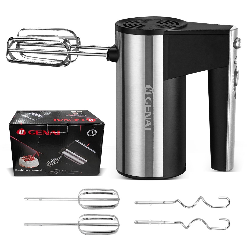 Genai 300W Potência e Versatilidade para sua Cozinha Transforme suas experiências culinárias com a Batedeira Planetária , um essencial para toda cozinha moderna. Este modelo combina potência, versatilidade e um design sofisticado para tornar o preparo de suas receitas mais fácil e eficiente. Características do Produto: Potência Imbatível: Equipado com um motor de 300 watts, a batedeira oferece 5 velocidades ajustáveis e um modo turbo para misturas rápidas e homogêneas. Versatilidade na Cozinha: O movimento planetário garante uma mistura uniforme, enquanto os acessórios inclusos permitem trabalhar com diferentes tipos de massas e ingredientes. Design Ergonômico: Confortável de usar, com baixo nível de ruído e um design que economiza espaço, podendo ser colocada em pé sobre superfícies após o uso. Durabilidade: Fabricada em aço inoxidável e plástico resistente, assegurando longa durabilidade e desempenho consistente. Facilidade de Uso: Equipado com um botão de liberação para trocar os acessórios de forma rápida e segura. Especificações Técnicas:GENAI Potência: 300W Voltagem: 110V Material: Plástico e aço inoxidável Número de Velocidades: 5 Cor: Preto e inox O que vem na caixa: 1x Batedeira de mão 2x Ganchos para misturar massa 2x Batedores para chantilly, ovos e mais Observação: vendemos apenas 110 V, não 220 V, e o batedor de ovos não é de dois volts!