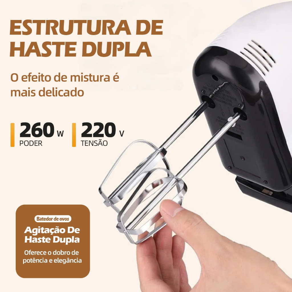 Batedeira Misturadora Leve De Mão Com 7 Velocidades 110V Bate Bolo Massa Chantilly Ovo