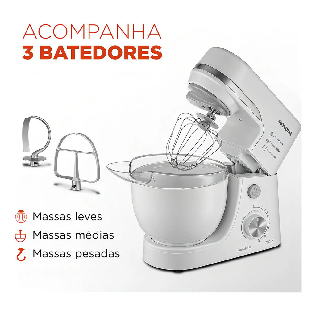 Batedeira Planetária Mondial Bp-03w-2b 12 Velocidades 700w - Branco