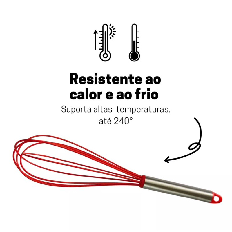 Batedor De Ovos Fouet De Silicone Com Cabo inox 21 cm 25 cm 29 cm off