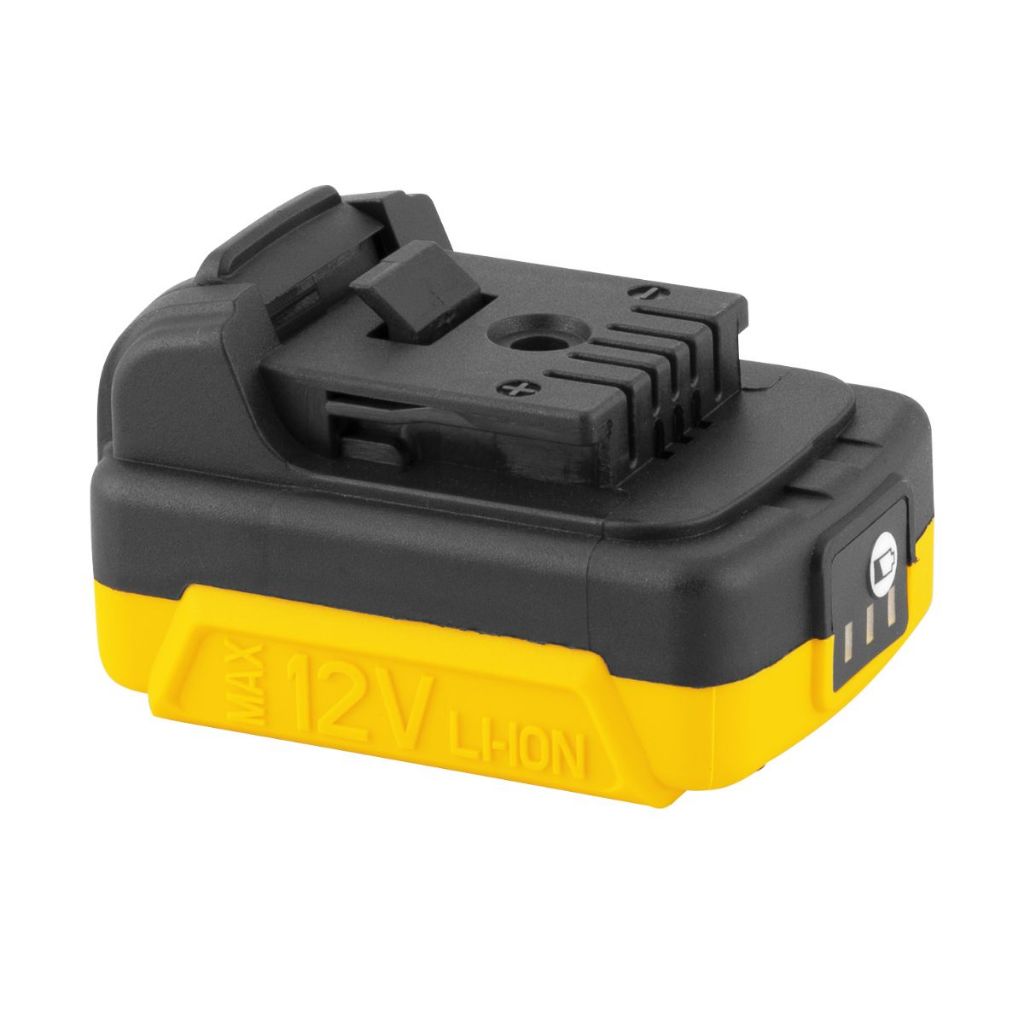 Indicada para reposição na Parafusadeira/furadeira a bateria, 12 V, fonte bivolt automática, PFV 120, VONDER (60.01.100.120). Bateria de íons de lítio, garantindo alta eficiência de operação. Possui LED's indicadores de nível de carga. Conteúdo da Embalagem: 1 Bateria. Detalhes técnicos: Tipo de bateria: Íons de lítio Tensão (V): 12 V Capacidade da bateria (A): 1,3 Ah Indicador de bateria fraca: Sim Massa aproximada (peso): 0,25 kg