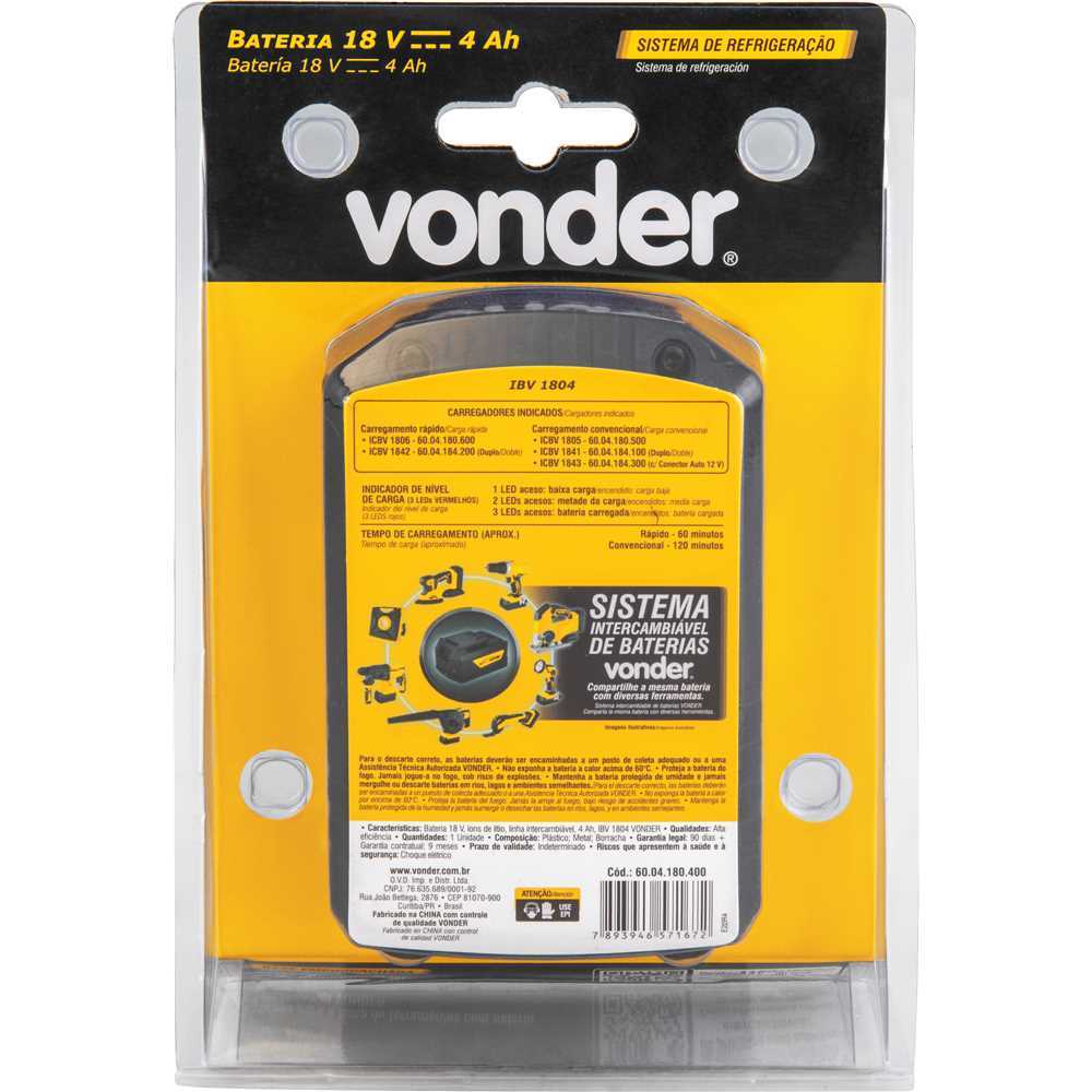 | Bateria 18V Linha Intercambiável 4.0Ah Ibv1804 Vonder este produto | R$ 304,90 | 21% | 5.0/5 | 1 |