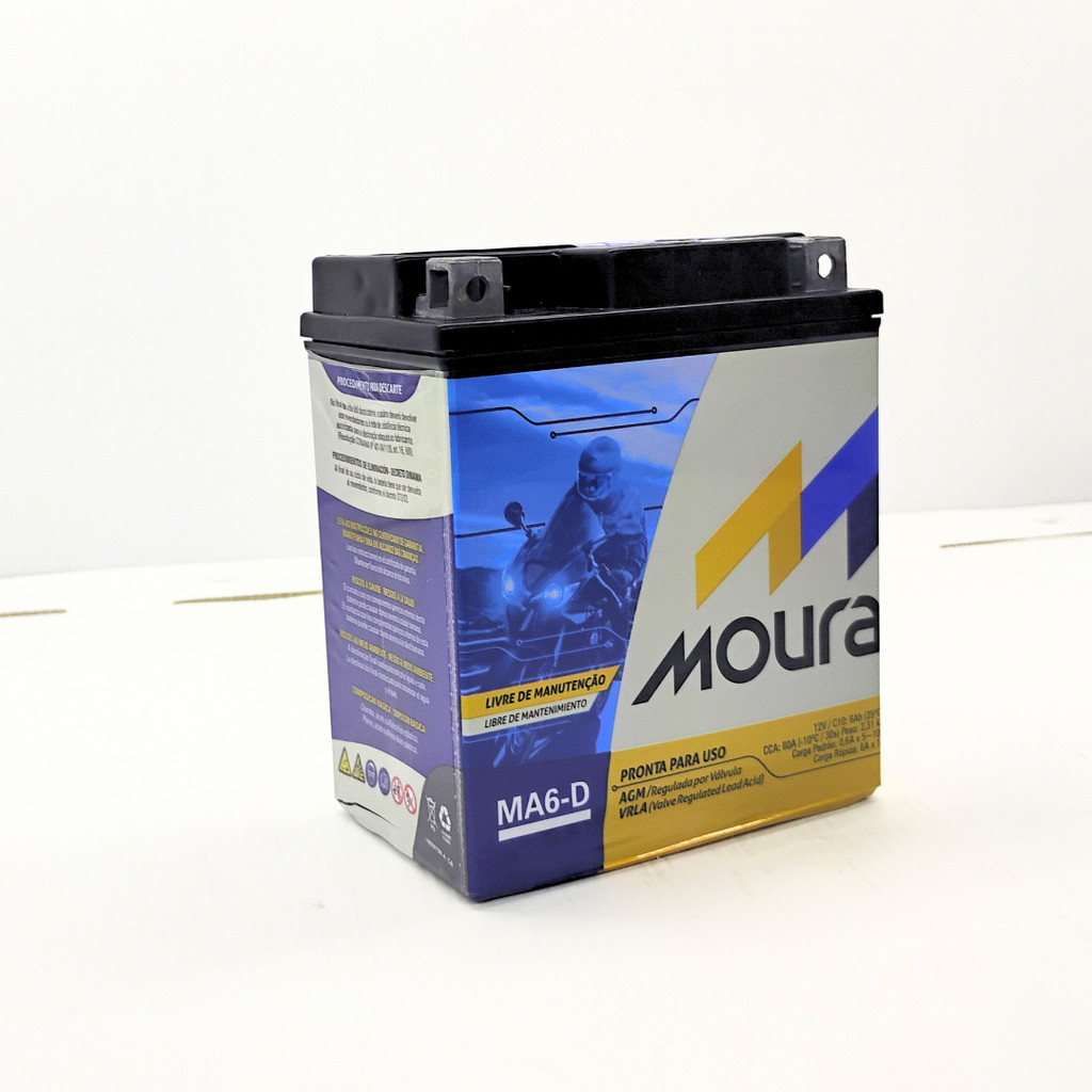 BATERIA ORIGINAL MOURA (MA6-D) - PREÇO REFERENTE A 01 UNIDADE APLICAÇÕES: HONDA HONDA BIZ 125 - 2006 2007 2008 HONDA CB 300R - 2009 2010 2011 2012 2013 2014 2015 HONDA CB 600F HORNET - 2005 a 2006 HONDA CBR 250R - 2012 HONDA CBX 250 TWISTER - 2001 2002 2003 2004 2005 2006 2007 2008 2009 HONDA CG 150 TITAN ES/ESD/SPORT - 2004 a 2005 HONDA CRF 250L - 2013 a 2014 HONDA ELITE 125 - 2019 2020 2021 2022 2023 2024 HONDA LEAD 110 - 2010 2011 2012 2013 2014 2015 HONDA NX4 FALCON - 2000 2001 2002 2003 2004 2005 2006 2007 2008 HONDA NX 400i FALCON - 2013 a 2014 HONDA XR 250 TORNADO - 2001 2002 2003 2004 2005 2006 2007 2008 2009 HONDA XRE 300 - 2019 2020 2021 2022 2023 YAMAHA YAMAHA FAZER FZ25 - 2018 2019 2020 2021 2022 2023 2024 YAMAHA MT-03 - 2017 2018 2019 2020 2021 2022 2023 2024 YAMAHA NMAX 160 - 2017 2018 2019 2020 YAMAHA XMAX 250 - 2021 2022 2023 2024 YAMAHA XTZ 250 LANDER - 2007 2008 2009 2010 2011 2012 2013 2014 2015 2016 2017 2018 2019 2020 2021 2022 2023 2024 YAMAHA XTZ 250 TÉNÉRÉ - 2011 2012 2013 2014 2015 2016 2019 2020 YAMAHA YS 250 FAZER - 2006 2007 2008 2009 2010 2011 2012 2013 2014 2015 2016 2017 YAMAHA YZF R3 - 2016 2017 2018 2019 2020 2021 2022 2023 2024 SUZUKI SUZUKI Suzuki Dr 125 Se/Ses de 1994 1995 1996 Suzuki Katana 125 1997 1998 1999 2000 Suzuki Rv 125 Se/R até 1994 Suzuki Yes 125 2004 EM DIANTE Suzuki Dr 200 S de 2015 2016 2017 2018 2019 Suzuki Dr 200 SE de 1996 1997 1998 1999 2000 2001 2002 2003 2004 2005 2006 2007 2008 2009 2010 2011 2012 2013 Suzuki Dr 250 S/Ep/Er/Es 1993 1994 1995 Suzuki Gz 250 de 1999 2000 2001 2002 2003 2004 2005 2006 2007 2008 2009 2010 2011 2012 Suzuki Intruder 250 de 1997 1998 1999 2000 * GARANTIA DE 06 MESES DO FABRICANTE, COM NOTA FISCAL * **RECOMENDAMOS QUE A INSTALAÇÃO SEJA REALIZADA POR PROFISSIONAIS ESPECIALIZADOS!** ESTAMOS A DISPOSIÇÃO PARA TIRAR SUAS DÚVIDAS! NÓS DA EQUIPE GOLDSPEED, AGUARDAMOS SUA COMPRA!