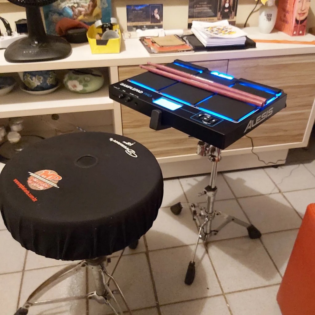🎶 Alesis SamplePad Pro – 8 Pads com LED — Versátil, Compacto e Potente 📌 Principais características 8 pads de borracha sensíveis à velocidade (velocity) com iluminação LED azul ativa para visualização clara durante a execução. 200+ sons internos de bateria, percussão e pratos, organizados em 10 kits prontos para uso. Slot para cartão SD (até 32 GB) para carregar seus próprios samples e expandir o banco de sons. Entradas extras: 2 pads adicionais, pedal de bumbo (kick) com modo switch ou trigger, e pedal de hi-hat com operação switch ou variável. Conectividade completa: USB (para uso via MIDI e transferência de samples), MIDI IN/OUT, saídas estéreo (L/R), saída para fone de ouvido e entrada auxiliar (aux in) para tocar sobre backing tracks. Interface simples com display LCD e botões de navegação facilitada para troca de sons, kits e ajustes. Fonte de alimentação 9 V DC inclusa. ✅ Vantagens e usos Excelente para músicos que desejam adicionar efeitos eletrônicos à sua bateria acústica (setup híbrido). Ideal também como instrumento independente: basta conectar a um sistema de som, interface ou PA para performance ou gravação. Permite personalização criativa total: você pode montar seus próprios kits, ajustar parâmetros de som (pitch, reverb, sensibilidade etc.) e criar timbres únicos. Design compacto e leve: fácil de transportar para shows, ensaios ou estúdio. ⚠️ Observe antes de comprar Alguns usuários relataram crosstalk (interferência entre pads) em toques suaves, especialmente antes de atualizações de firmware. A sensação dos pads não é tão “sólida” quanto de marcas premium concorrentes, mas ainda assim bem satisfatória para a maioria dos usos. O cartão SD não vem incluso — será necessário adquirir separadamente para usar samples customizados. 📦 Itens inclusos no kit Módulo Alesis SamplePad Pro Fonte de alimentação 9 V DC Manual do usuário