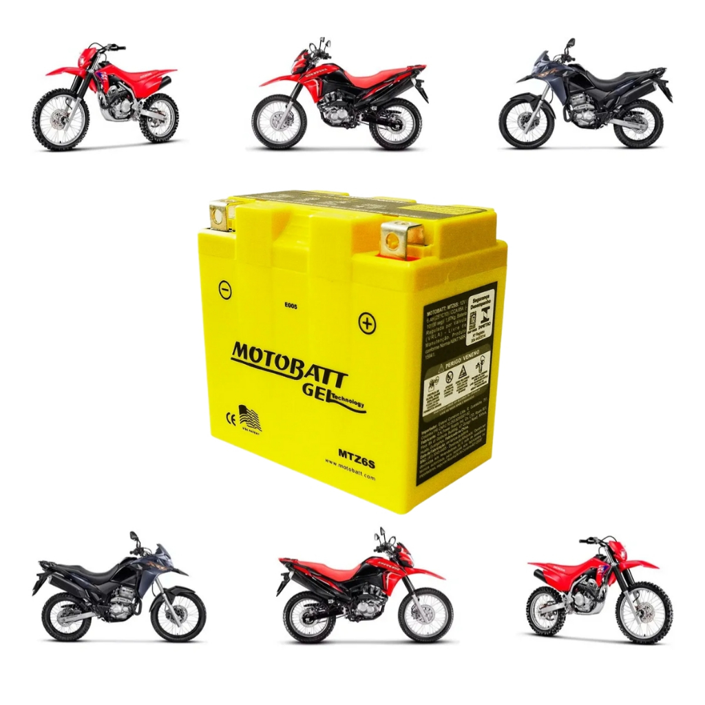Bateria Gel Motobatt 12V 6ah Mtz6s Titan 160 Xre 300 Cb 250 Twister Honda Pcx Cg 150