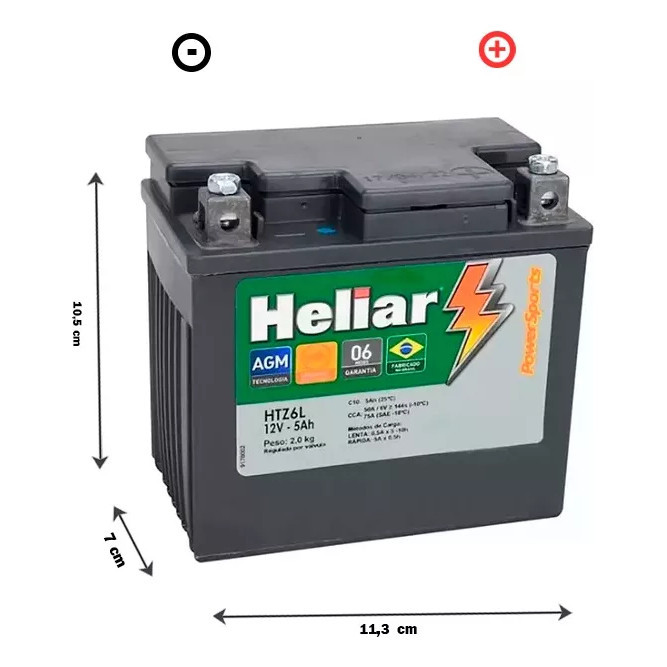 BATERIA HELIAR HTZ6L 12V 5AH PRODUTO ORIGINAL, UTILIZADO PELAS MAIS RENOMEADAS MARCAS DO MERCADO DE MOTO E AUTO-PEÇAS! -
