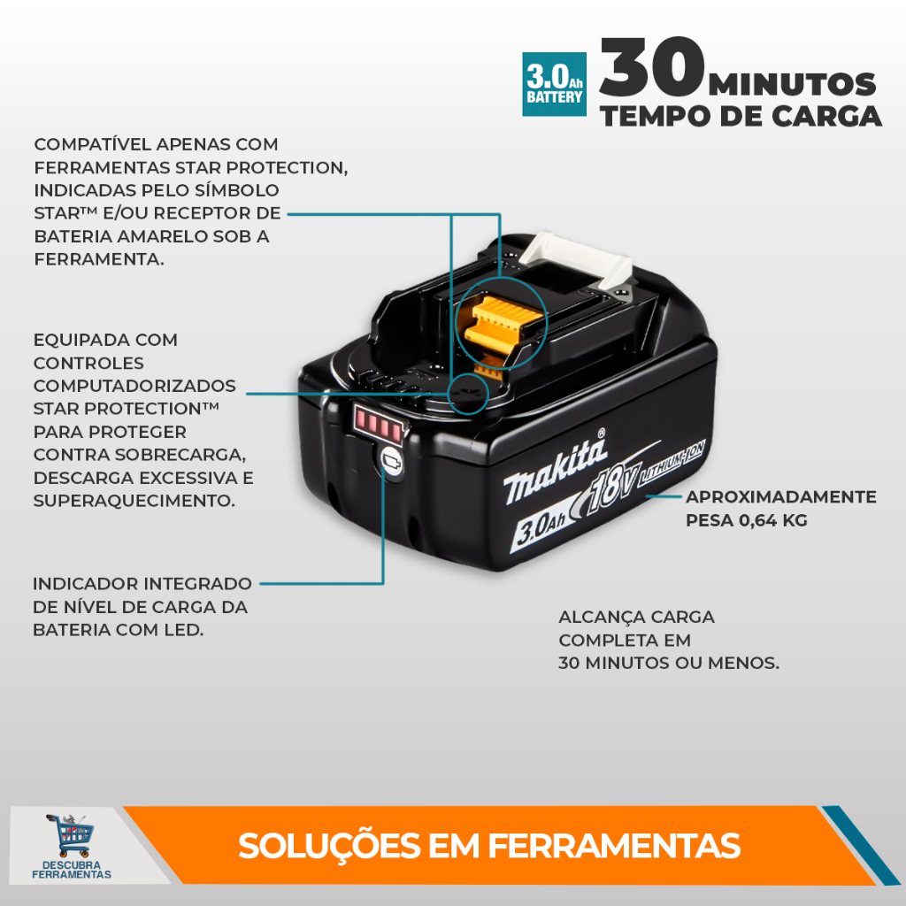 | Bateria Makita 18V LXT Lítio Recarregável 3Ah 5Ah 6Ah P/ Furadeira ... este produto | R$ 380,44 | 29% | 4.6/5 | 5 |