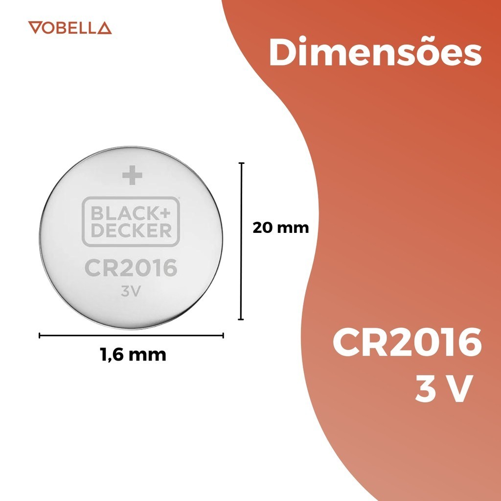 Bateria Moeda CR2016 3V Blister Com 5 Unidades Black+Decker