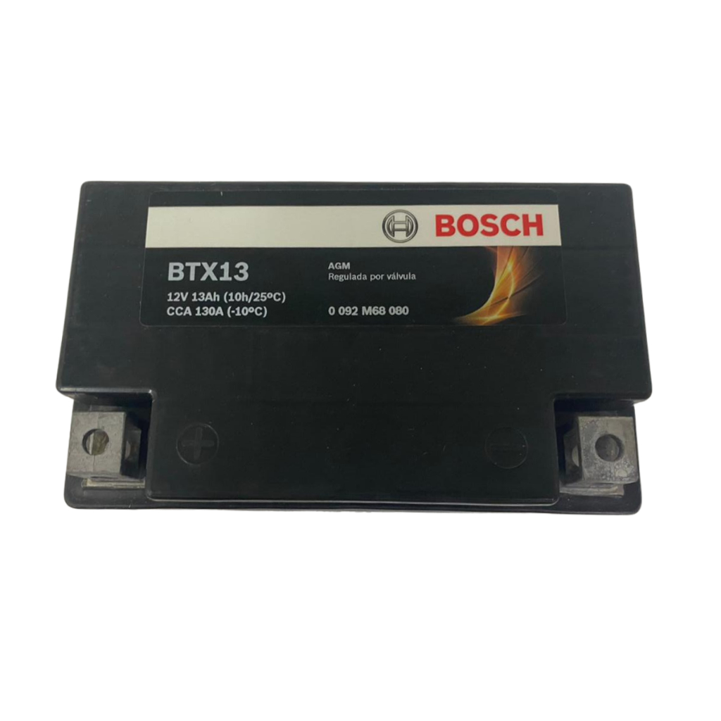A bateria Bosch BTX13 12V é indicada para motocicletas de média a alta cilindrada que exigem desempenho confiável e duradouro. Ela utiliza tecnologia selada AGM/VRLA, vem lacrada de fábrica e já ativada, pronta para uso imediato, sem necessidade de adição de ácido ou manutenção periódica. Sua construção robusta garante partidas confiáveis e consistentes, mesmo em uso frequente ou em condições adversas, com boa resistência a vibrações e impactos. Dados técnicos e diferenciais A bateria possui tensão nominal de 12V e capacidade nominal de 12 à 13 Ah (dependendo da versão). A corrente de partida a frio (CCA) é de aproximadamente 130 A, o que assegura arranque seguro mesmo em motos com motor de média ou alta cilindrada. A tecnologia AGM/VRLA garante retenção eficiente de carga, reduz auto-descarga, aumenta resistência à corrosão e vibrações, e dispensa manutenção periódica. A estrutura interna é reforçada, o que assegura maior vida útil e confiabilidade mesmo sob uso intenso. Dimensões e peso As dimensões aproximadas da bateria são 150 mm de comprimento por 87 mm de largura por 146 mm de altura. O peso varia conforme a versão, mas geralmente está em torno de 5,2 kg, compatível com baterias de alta capacidade e exigência elétrica. Conteúdo da embalagem A embalagem inclui a bateria Bosch BTX13 12V, selada e ativada de fábrica, pronta para instalação imediata. Não é necessária adição de componentes extras ou preparo antes do uso. Características de destaque Bateria selada e livre de manutenção pronta para uso imediato. Partida confiável e estável mesmo após longos períodos parada ou em uso contínuo. Alta capacidade e CCA compatível com motos de médio a grande porte. Construção robusta, resistente a vibrações, impactos e condições adversas. Instalação simples e compatibilidade com diversos modelos de motos que utilizam esse padrão. Produto original Bosch, com procedência certificada. Mais informações sobre uso e aplicação A Bosch BTX13 é indicada para motocicletas de média e alta cilindrada ou que têm maior demanda elétrica, seja para uso urbano ou em estrada. Ela atende bem modelos que exigem bateria 12V ~13 Ah com CCA elevado, oferecendo confiabilidade no arranque e estabilidade elétrica mesmo com uso frequente ou sistemas elétricos mais exigentes. Garantia: Após 90 dias a garantia só será valida mediante apresentação do certificado devidamente preenchido.