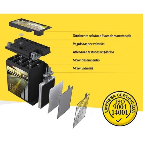 Bateria ROUTE Modelo : YTX12-BS Informações técnicas - Tensão Nominal 12V - Capacidade 10 Ah - CCA-10ºC 100 A - Características VRLA / Selada - Técnologia AGM - Corrente de Carga 1,2A x 5~10h - Polaridade [+__-] Dimensões: - Comprimento: 150 mm - Largura: 81 mm - Altura: 131 mm Aplicação: - Suzuki 650 DL650 V-Strom ABS, Adventure 2004 - 2017 - Suzuki 750 GSXR750W 1993 - Suzuki 800 VL800 Intruder Volusia, Boulevard C50, T, M50 2001 - 2014 - Suzuki 800 VZ800 Marauder 1997 - 2008 - Suzuki 1000 GSX-R1000 2001 - 2004 - Suzuki 1000 TL1000S 1997 - 2001 - Suzuki 1100 GSX-R1100 W 1993 - 1998 - Suzuki 1200 GSF1200S Bandit 1997 - 2005 - Suzuki 1300 GSX1300BK B-King 2008 - 2011 - Suzuki 1300 GSX1300R, Z Hayabusa 2008 - 2017 ------------------------------------------------------------- ***Qualquer duvida na aplicação da bateria favor tirar esclarecimentos no campo de Perguntas ao vendedor. -------------------------------------------------------------- TECNOLOGIA DE ÚLTIMA GERAÇÃO Providas com a mais avançada tecnologia, as baterias ROUTE são reguladas por válvulas (VRLA) e tem eletrólito absorvido em mantas de fibra de vidro (AGM). À prova de vazamento e sem necessidade de manutenção, as baterias ROUTE proporcionam também maior praticidade, segurança e tranquilidade ao usuário, pois não há necessidade do manuseio ou contato com a solução ácida. =================================== COMPRE COM TRANQUILIDADE Empresa séria e correta Com loja física e há mais de 10 anos com vendas on-line Nossos produtos acompanham Nota Fiscal Postagem rápida com o melhor pós-venda Garantia de todos os produtos Ótima reputação e clientes satisfeitos ---------------------------------------- Atenção!!! Antes de clicar em comprar, favor tirar todas as suas duvidas no campo de perguntas ao vendedor.