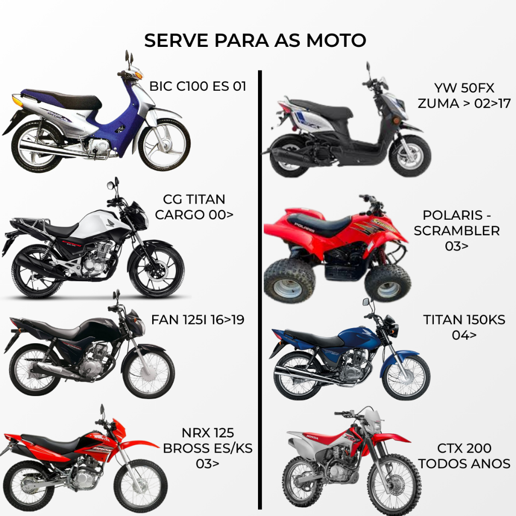 Alta performance e durabilidade em partidas, mesmo nas condições mais exigentes. A MTZ6L é ideal para quem busca uma bateria confiável para motos de média cilindrada. DETALHES DO PRODUTO Modelo: MTZ6L Marca: Motorlight Tipo: Selada (livre de manutenção) Capacidade nominal: 6Ah Tensão: 12 V CCA (A): 60 A Peso aproximado: 2,1 kg Terminal: Positivo à direita / negativo à esquerda DIMENSÕES (aproximadas) Comprimento: 114 mm Largura: 71 mm Altura: 131 mm APLICAÇÕES Compatível com diversos modelos, entre outras: Dafra Smart 125 (2010) Super 50 / Super 100 / Zig+ (todos anos) Honda Biz 125 ES 2009-2011 Broz 150 ES/ESC 2010 em diante CB 250 Twister 2015 em diante Fan 125 ES 2009-2011 Fan 150 ES/ESD 2009-2011 New CG 150 Mix Fuel ES / ESD 2009 em diante NXR 150 Bros ES / ESD 2003 em diante Titan 150 Mix ES / ESD 2009-2011 XL 200 (todos anos) XRE 300 2010 em diante XRE 300 ABS (todos os anos compatíveis) Yamaha Crypton 115 2013 em diante Factor / YBR 125 (várias versões) TTR 125 2013 em diante YBR 125 E/K/ED (variações desde 2000) YR 450 (todos anos) Kasinski Seta 150 2006 em diante Way 125 2008 em diante Kawasaki KLX 250S (Recomenda-se sempre confirmar no manual da moto ou com o fabricante se a bateria atende exatamente à necessidade elétrica da moto.) PERGUNTAS FREQUENTES 1. Essa bateria serve para Broz, NXR, XRE etc? R: Sim — ela é compatível com Broz 150, NXR 150 Bros, XRE 300 entre outros modelos listados. 2. É selada? Preciso colocar água? R: Não. A MTZ6L é selada e livre de manutenção, pronta para uso desde a entrega. 3. Qual a voltagem e capacidade? R: 12 V e 6 Ah, proporcionando boa reserva de carga e potência para partidas. 4. Qual o polo positivo e negativo? R: O polo positivo fica à direita quando você olha de frente para os terminais. bateria moto 12V 6Ah bateria selada para moto bateria Motorlight MTZ6L bateria Broz 150 bateria XRE 300 bateria NXR 150 bateria para Dafra Smart / Zig+ bateria kasinski / kawasaki moto