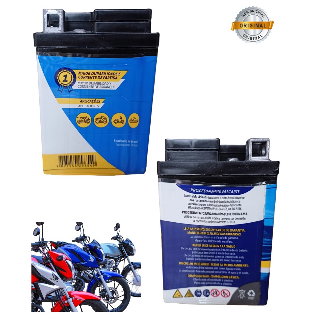 A Bateria Moto Moura MA5-D 12V para Honda Biz é ideal para quem busca partida rápida, durabilidade e zero manutenção no uso diário. Fabricada com tecnologia AGM VRLA selada, essa bateria não vaza, não precisa completar água e garante energia estável mesmo em trajetos urbanos intensos. Produto 100% original Moura, marca líder no Brasil em baterias para motos, reconhecida pela confiabilidade e longa vida útil. --- 🔋 Principais Benefícios Tecnologia AGM Selada (VRLA) Livre de manutenção Partida forte e confiável Alta resistência a vibrações Ideal para uso diário, trabalho e entregas Maior durabilidade em comparação a baterias comuns --- 🏍 Compatibilidade – Honda Biz Compatível com os seguintes modelos: Honda Biz 100 2002 em diante Honda Biz 110i Honda Biz 125 Honda Biz ES / EX /KS / FLEX (Também compatível com outros modelos que utilizam bateria MA5-D 12V. Em caso de dúvida, consulte a bateria antiga.) --- ⚙️ Especificações Técnicas Marca: Moura Modelo: MA5-D Tensão: 12V Tecnologia: AGM Selada – VRLA Livre de manutenção Produto novo e original --- 📦 Conteúdo da Embalagem 1 Bateria Moura MA5-D Manual / Informações técnicas --- 🚚 Envio Rápido e Seguro Produto enviado com embalagem reforçada, garantindo segurança no transporte. Compra segura e suporte via chat da loja. --- #bateriabis #bateriahondabis #bateriamoura #ma5d #bateriamoto #bateria12v #bateriaselada #agmvrla #mouraoriginal