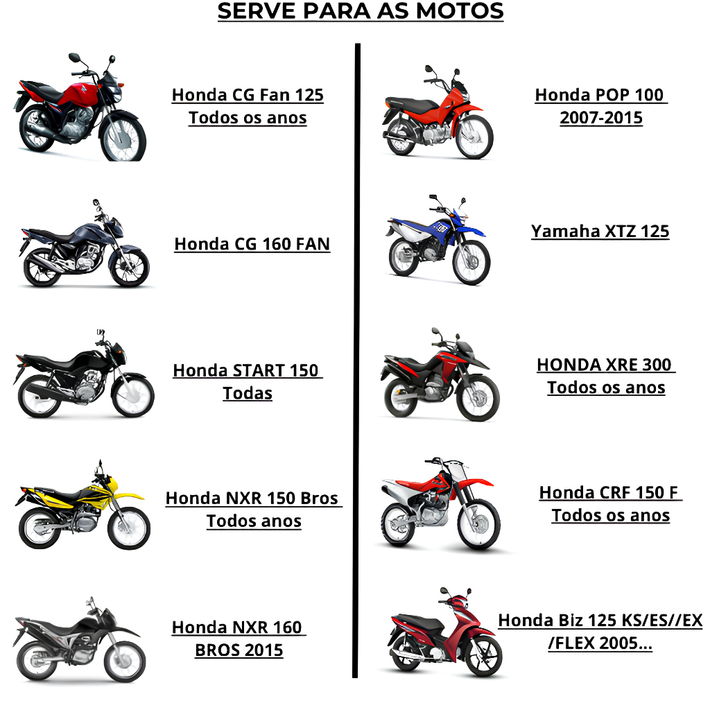 Marca: Pioneiro MBR Código: 8001 Modelo: MBR 5 BS Material: Chumbo-Ácido Tipo de Bateria: AGM Tecnologia: VRLA Tensão: 12 V Capacidade (C10) (25ºC): 5 Ah Corrente de Partida (CCA) (-10°C): 50 A Tempo até 6V: 50 s Carga Lenta: 0,5 A x 5 ~ 10 h Carga Rápida: 2,5 A x 1 h Polaridade; Direita Tipo de Polo: Quadrado Selada: Sim Classificação: Livre de Manutenção Posição de Instalação: Horizontal, Vertical Dimensões (C x L x A): 114 x 71 x 106 mm Peso: 1,71 kg Garantia: 12 meses DAFRA: HORIZON 150 HONDA: BIZ 125 KS, BIZ 125+, C 100 BIZ ES, CG 125 CARGO, CG 125 FAN, CG 125 TITAN ES, CG 125 TITAN KSE, CG 150 JOB, CG 150 TITAN KS, CRF 110F, CRF 230 F, NXR 125 BROS ES, NXR 125 BROS KS, POP 100