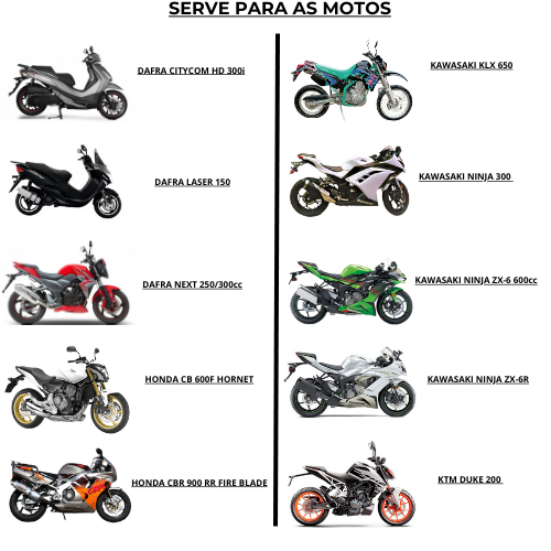 Especificações Técnicas: Marca: Pioneiro Modelo: MBR8-VP Referência Yuasa: YTX9-BS Tensão: 12V Capacidade: 8 AH CCA(Ah): 80A Código EAN: 7898949008071 Polo Positivo: Esquerdo Peso: 2,8 KG Dimensões (Comp. x Larg. x Alt.): 15,0 x 8,7 x 10,8 cm GARANTIA: 12 MESES Características: Pronta para o uso - ativada e testada na fábrica; Tecnologia AGM/VRLA Não requer manuseio do ácido pelo usuário; Bateria selada e blindada com solução ácida imobilizada; Totalmente livre de manutenção; Ligas de chumbo especialmente desenvolvidas para melhorar o rendimento e a durabilidade; Separador de fibra de vidro AGM e pastilha antichamas; Funciona em qualquer posição (horizontal ou vertical); Maior resistência a impactos e vibrações; Maior corrente de partida (CCA); Melhor retorno de carga e menor auto descarga da bateria; Material plástico ABS com resistência superior; Homologada pelo INMETRO Selo de Qualidade ISO9001 Selo de Gestão Ambiental ISO14001 Selo Gestão Automotiva IATF16949 Normas ABNT NBR 15916, NBR15745, NBR 15941 Principais Aplicações: ROYAL ENFIELD HIMALAYAN: TODOS OS MODELOS ROYAL ENFIELD METEOR: 2021 EM DIANTE BMW_310_GS: Ano: TODOS DAFRA_CITYCOM 300i_Ano: ATÉ 2010 DAFRA_CITYCOM 300 S : 2017 EM DIANTE DAFRA_CITYCOM HD 300: 2020 A 2024 DAFRA_CITY_CLASS: TODOS OS MODELOS DAFRA_LASER_Ano: 2007 EM DIANTE DAFRA_KANSAS 150_Ano: 2007 EM DIANTE DAFRA_HORIZON: TODOS OS MODELOS DAFRA_MAXSYM 400i - TODOS OS MODELOS DAFRA_NEXT_ 250_Ano: TODOS OS MODELOS DAFRA_ROADWIN_250_Ano: TODOS OS MODELOS HONDA_CB 400F CB-1 - 1989 A 1990 HONDA_CB 500 - 1998 A 2005 HONDA_CB 600 F_Ano: 1989 A 1990 HONDA_CBR 600_Ano: 1987 A 2000 HONDA_CBR 900R/RR: 1993 A 1999 HONDA_DOMINATOR_NX 650 - TODOS OS MODELOS HONDA_HORNET - 2008 A 2010 HONDA_NC 700 - TODOS OS MODELOS HONDA_NC 750X - TODOS OS MODELOS HONDA_NT 650 HAWK - 1988 A 1991 HONDA_NT 650 - 1999 A 2001 HONDA_NX 650_Ano: 1988 A 1989 HONDA_RVF 750 R RC 45: 1994 EM DIANTE HONDA_SHADOW 600_Ano: TODOS HONDA_SLR 650_Ano: 97/... HONDA_TR 200 FAT CAT_Ano: 86/... HONDA_TRX 700XX_Ano: 08/13 HONDA_VFR 750 R RC30_Ano: 90/... HONDA_VIGOR 650_Ano: 99/... HONDA_VT 600C/ CD SHADOW DELUXE_Ano: 88/03 HONDA_VT 600 SHADOW_Ano: TODOS HONDA_XR 650 L_Ano: 83/06 KASINSKI_COMET 250_Ano: 2007 EM DIANTE KASINSKI_MIRAGE 250_Ano: 2007 EM DIANTE KASINSKI_PRIMA 150_Ano: 2010 A 2013 KAWASAKI_KLX 650 C/R_Ano: 93/96 KAWASAKI_KZ 750-L NINJA_Ano: 93/... KAWASAKI_NINJA R 250_Ano: TODOS KAWASAKI NINJA 300_Ano: TODOS KAWASAKI NINJA 400_Ano: TODOS KAWASAKI VERYS X300_Ano: TODOS KAWASAKI_Z 750_Ano: 08/12 KAWASAKI_Z 800 ABS_Ano: 13/18 KAWASAKI_Z 1000_Ano: TODOS KAWASAKI_ZX 600-G / J NINJA ZX-6R_Ano: 93/96 KAWASAKI_ZX 600-K / M NINJA ZX-6RR_Ano: 03/05 KAWASAKI_ZX 636-B NINJA ZX-6R_Ano: 03/05 KAWASAKI_300 NINJA _Ano: 13/18 KAWASAKI_ZX 750 NINJA ZX/ 7RR_Ano: 91/97 KAWASAKI_ZX 750_Ano: TODOS KAWASAKI_Z 800_Ano: 2013 A 2016 KAWASAKI_ZX 900-C / NINJA ZX 9R_Ano: 98/99 KAWASAKI_ZX 900-E / F NINJA ZX-9R_Ano: 00/03 SUNDOWN_FUTURE 125/ 125 SPORT_Ano: TODOS SUZUKI_BURGMAN 400_Ano: TODOS SUZUKI_BANDIT 650_Ano: TODOS SUZUKI_DR 650SE_Ano: 98/05 SUZUKI_DR 650 SE CN_Ano: 96/97 SUZUKI_FREEWIND 650_Ano: TODOS SUZUKI_GSF 400 BANDIT_Ano: 91/93 SUZUKI_GSF 600 S BANDIT_Ano: 96/03 SUZUKI_GSX 600F KATANA_Ano: 98/05 SUZUKI_GSX 650F_Ano: 09/16 SUZUKI_GSX 750F KATANA_Ano: 99/05 SUZUKI_GSX-R 600_Ano: 97/05 SUZUKI_GSX-R 600W_Ano: 92/93 SUZUKI GSF 650S BANDIT Ano:2005-2016 SUZUKI_GSX-R 750_Ano: 96/99 SUZUKI_RF 600 R/S_Ano: 94/96 SUZUKI_RF 900 R/S/ ZS_Ano: 94/97 SUZUKI_INAZUMA_250_Ano: TODOS OS MODELOS SUZUKI_BANDIT 650 - ATÉ 2012 TRIUMPH_SPEED TRIPLE 1050_Ano: TODOS OS MODELOS YAMAHA MT-03_Ano: TODOS YAMAHA_XJ 600 S SEXA II_Ano: 92/98 YAMAHA_XT 600 Z TENERE_Ano: 12/13 YAMAHA_XV 250_Ano: TODOS YAMAHA_XT 600 E_Ano: 93/05