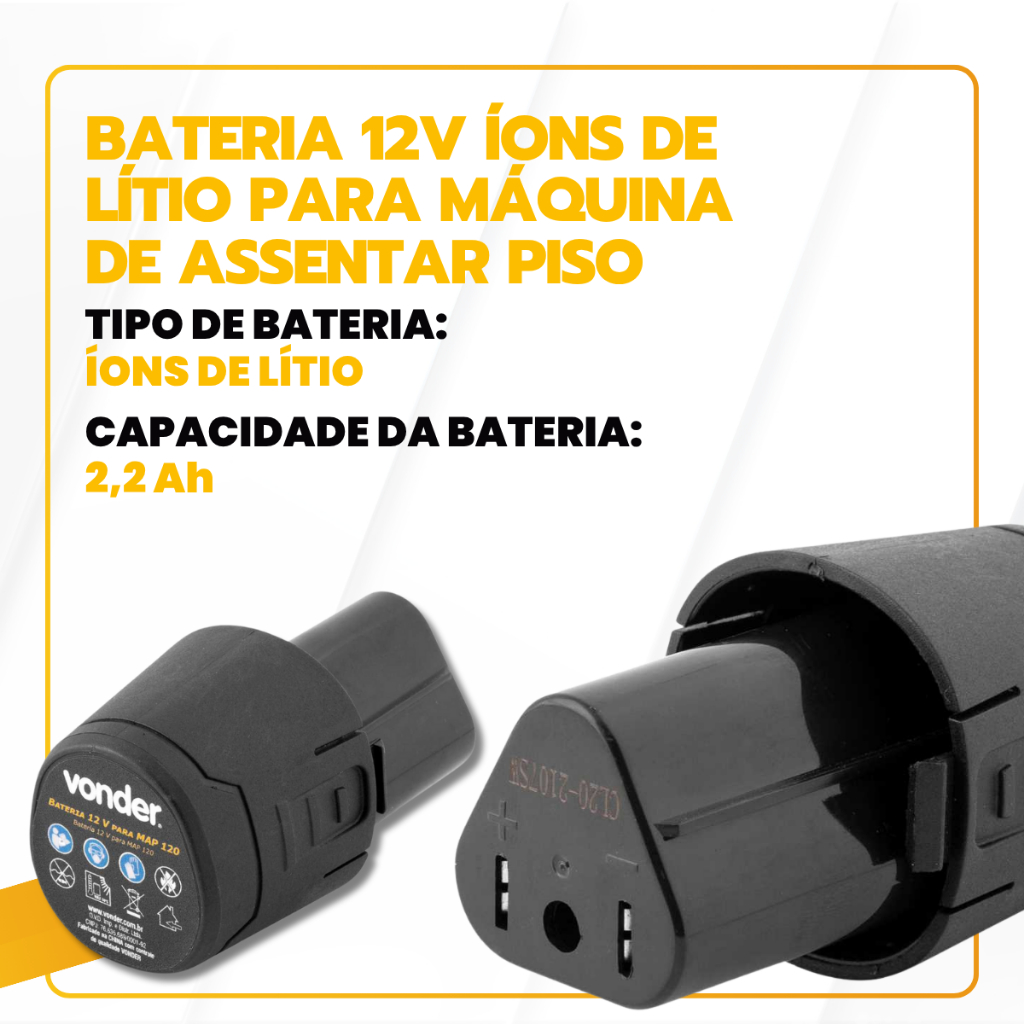 Bateria Para Máquina de Assentar Piso MAP 120 e MAP 125 12V Íons de Lítio - VONDER