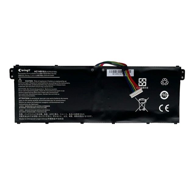 Bateria para Notebook Acer Predator Helios 300 G3-572-75L9 A Bateria Acer Predator Helios 300 G3-572-75L9 possui um excelente sistema de recarga inteligente que impede o sobrecarregamento e superaquecimento da peça. Também conta com células de íons de lítio, imunes ao 'efeito memória', são mais potentes e garantem um melhor desempenho. Ressaltamos que o produto foi aprovado por rigorosos testes de qualidade e atende todas as exigências do seu aparelho. Além de possuir 12 meses de garantia contra defeitos de fabricação. Atenção: Essa é uma bateria bringIT, portanto não é um produto original da fabricante Acer. Caso seja necessário, todo o suporte e garantia do produto serão oferecidos pela nossa equipe. Para evitar problemas de compatibilidade, por favor verifique as especificações da sua bateria. Marca: bringIT Modelo: G3-572-75L9 Capacidade: 2200 mAh Quantidade de Células: Lítio-Polímero Voltagem: 11.4 V Cor: Preto Referência: BC205-AC-0109 Atenção: Para que essa bateria seja compatível com seu notebook, a voltagem deverá ser igual ou equivalente a descrita no anúncio. A variação de voltagem de uma bateria pode chegar a até 10%. Portanto, se a voltagem for a mesma ou equivalente (dentro dessa variação), a bateria será compatível com seu notebook. Por exemplo: - 11.1V é compatível com 10.8V - 14.8V é compatível com 14.4V - 10.8V não é compatível com 14.4V Esse produto é compatível com os notebooks: ES1-531-C3CC, ES1-531-P416, ES1-572-3562, ES1-531-C6FQ, 11 CB3-111, ES1-531-31XM, AC14B18J, ES1-531-P0JJ, AC14B8K, 13 CB5-311-T1UU, ES1-531-C3HE Ficou na dúvida da compatibilidade ou precisa de mais informações? Deixe sua pergunta que nosso time técnico especializado está preparado para auxiliar! A bringIT é líder de mercado com o maior mix de produtos e peças para notebook: Baterias, telas, teclados e carregadores compatíveis com as marcas: Dell, Lenovo, Acer, HP, Asus e muito mais!