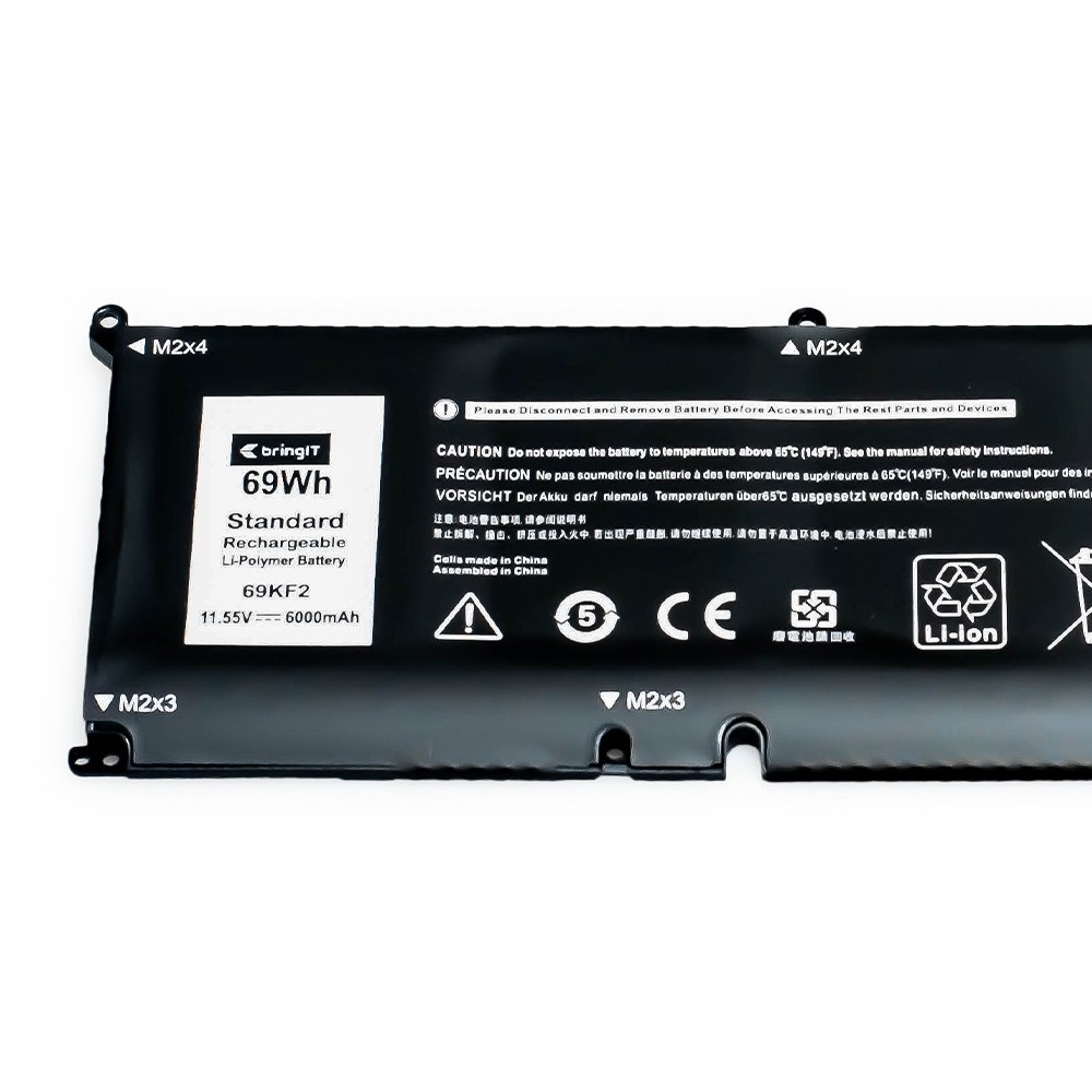 Bateria para Notebook Dell Part Number 69KF2 A Bateria Dell Part Number 69KF2 possui um excelente sistema de recarga inteligente que impede o sobrecarregamento e superaquecimento da peça. Também conta com células de íons de lítio, imunes ao 'efeito memória', são mais potentes e garantem um melhor desempenho. Ressaltamos que o produto foi aprovado por rigorosos testes de qualidade e atende todas as exigências do seu aparelho. Além de possuir 12 meses de garantia contra defeitos de fabricação. Atenção: Essa é uma bateria bringIT, portanto não é um produto original da fabricante Acer. Caso seja necessário, todo o suporte e garantia do produto serão oferecidos pela nossa equipe. Para evitar problemas de compatibilidade, por favor verifique as especificações da sua bateria. Marca: bringIT Modelo: 69KF2 Capacidade: 6000 mAh Quantidade de Células: Lítio-Polímero Voltagem: 11.55 V Cor: Preto Referência: BC399-DE-0001 Atenção: Para que essa bateria seja compatível com seu notebook, a voltagem deverá ser igual ou equivalente a descrita no anúncio. A variação de voltagem de uma bateria pode chegar a até 10%. Portanto, se a voltagem for a mesma ou equivalente (dentro dessa variação), a bateria será compatível com seu notebook. Por exemplo: - 11.1V é compatível com 10.8V - 14.8V é compatível com 14.4V - 10.8V não é compatível com 14.4V Esse produto é compatível com os notebooks: Dell M15 R3 M15 R4 M17 R3 G15 5510 5511 69KF2 P91F Ficou na dúvida da compatibilidade ou precisa de mais informações? Deixe sua pergunta que nosso time técnico especializado está preparado para auxiliar! A bringIT é líder de mercado com o maior mix de produtos e peças para notebook: Baterias, telas, teclados e carregadores compatíveis com as marcas: Dell, Lenovo, Acer, HP, Asus e muito mais!