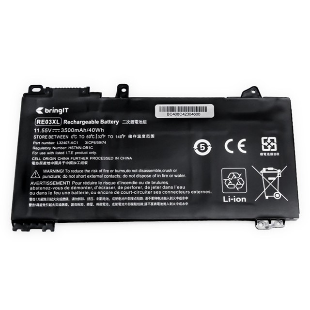 Bateria para Notebook Hp Part Number RE03XL A Bateria Hp Part Number RE03XL possui um excelente sistema de recarga inteligente que impede o sobrecarregamento e superaquecimento da peça. Também conta com células de íons de lítio, imunes ao 'efeito memória', são mais potentes e garantem um melhor desempenho. Ressaltamos que o produto foi aprovado por rigorosos testes de qualidade e atende todas as exigências do seu aparelho. Além de possuir 12 meses de garantia contra defeitos de fabricação. Atenção: Essa é uma bateria bringIT, portanto não é um produto original da fabricante Acer. Caso seja necessário, todo o suporte e garantia do produto serão oferecidos pela nossa equipe. Para evitar problemas de compatibilidade, por favor verifique as especificações da sua bateria. Marca: bringIT Modelo: RE03XL Capacidade: 3500 mAh Quantidade de Células: Lítio-Polímero Voltagem: 11.55 V Cor: Preto Referência: BC408-HP-0001 Atenção: Para que essa bateria seja compatível com seu notebook, a voltagem deverá ser igual ou equivalente a descrita no anúncio. A variação de voltagem de uma bateria pode chegar a até 10%. Portanto, se a voltagem for a mesma ou equivalente (dentro dessa variação), a bateria será compatível com seu notebook. Por exemplo: - 11.1V é compatível com 10.8V - 14.8V é compatível com 14.4V - 10.8V não é compatível com 14.4V Esse produto é compatível com os notebooks: Hp Probook 430 440 445 450 455r G6 G7 Re03xl Ficou na dúvida da compatibilidade ou precisa de mais informações? Deixe sua pergunta que nosso time técnico especializado está preparado para auxiliar! A bringIT é líder de mercado com o maior mix de produtos e peças para notebook: Baterias, telas, teclados e carregadores compatíveis com as marcas: Dell, Lenovo, Acer, HP, Asus e muito mais!