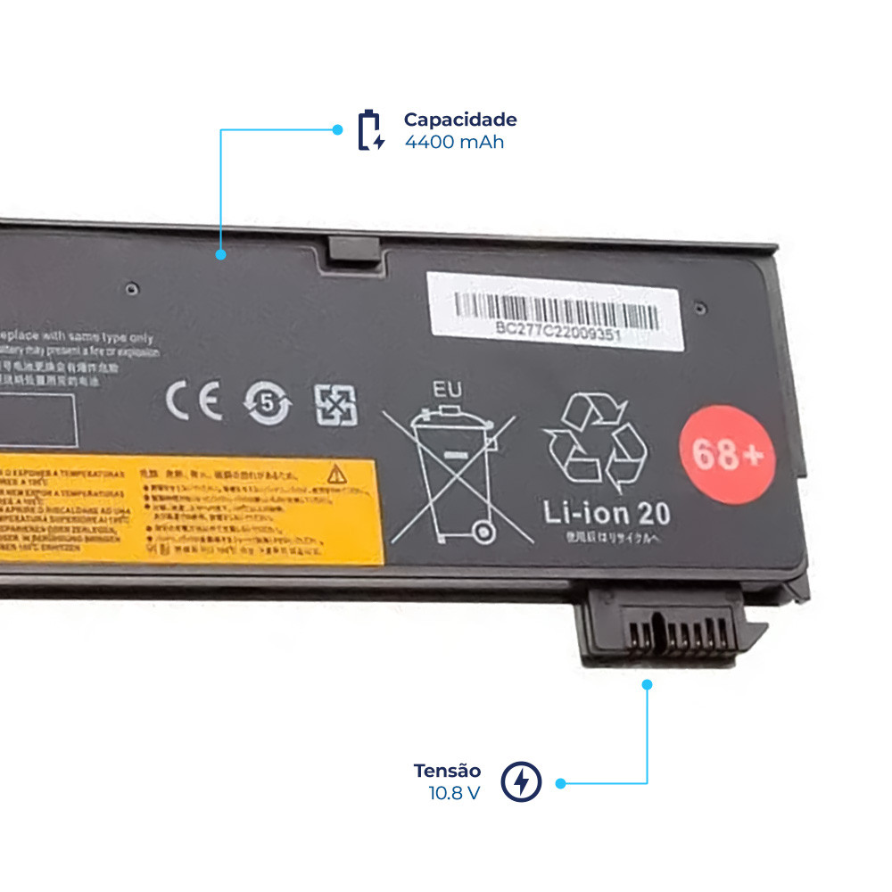 Bateria para Notebook Lenovo Thinkpad X240 A Bateria Lenovo Thinkpad X240 possui um excelente sistema de recarga inteligente que impede o sobrecarregamento e superaquecimento da peça. Também conta com células de íons de lítio, imunes ao 'efeito memória', são mais potentes e garantem um melhor desempenho. Ressaltamos que o produto foi aprovado por rigorosos testes de qualidade e atende todas as exigências do seu aparelho. Além de possuir 12 meses de garantia contra defeitos de fabricação. Atenção: Essa é uma bateria bringIT, portanto não é um produto original da fabricante Acer. Caso seja necessário, todo o suporte e garantia do produto serão oferecidos pela nossa equipe. Para evitar problemas de compatibilidade, por favor verifique as especificações da sua bateria. Marca: bringIT Modelo: X240 Capacidade: 4400 mAh Quantidade de Células: 6 Células Voltagem: 10.8 V (11.1 V) Cor: Preto Referência: BC277-LN-0003 Atenção: Para que essa bateria seja compatível com seu notebook, a voltagem deverá ser igual ou equivalente a descrita no anúncio. A variação de voltagem de uma bateria pode chegar a até 10%. Portanto, se a voltagem for a mesma ou equivalente (dentro dessa variação), a bateria será compatível com seu notebook. Por exemplo: - 11.1V é compatível com 10.8V - 14.8V é compatível com 14.4V - 10.8V não é compatível com 14.4V Esse produto é compatível com os notebooks: 45N1124, T440 Ficou na dúvida da compatibilidade ou precisa de mais informações? Deixe sua pergunta que nosso time técnico especializado está preparado para auxiliar! A bringIT é líder de mercado com o maior mix de produtos e peças para notebook: Baterias, telas, teclados e carregadores compatíveis com as marcas: Dell, Lenovo, Acer, HP, Asus e muito mais!