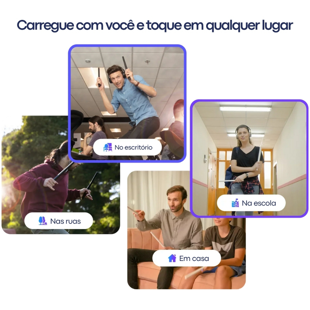 Pocket Drum PD02 Max – A Evolução da Bateria Invisível Mais Vendida do Brasil O PD02 Max é a nova geração da bateria eletrônica portátil mais desejada do mercado — evolução direta do Pocket Drum 2 Plus (modelo E004), agora com mais precisão, estabilidade e liberdade para tocar onde quiser, como quiser. Ideal para quem quer praticar bateria sem ocupar espaço, sem fazer barulho e com total liberdade de movimentos. Seja no sofá, no quarto, em viagens ou no estúdio, o PD02 Max transforma qualquer lugar em palco. Principais Diferenciais do Novo PD02 Max: Novo pedal com botão power dedicado: controle total e economia de bateria com apenas um toque Alcance Bluetooth ampliado de 2 m para 5 metros: liberdade real de movimento Estabilidade otimizada nos pedais: novos pontos antiderrapantes eliminam cliques fantasmas Precisão 50% superior nas baquetas: sensores melhorados para uma resposta mais fiel Novas cores disponíveis: personalize bastões, adaptadores e LEDs para brilhar nas redes Mesma leveza e portabilidade do modelo anterior, com mais performance e tecnologia Modo silencioso com fones de ouvido: perfeito para estudar em apartamentos Especificações Técnicas – Pocket Drum PD02 Max Marca: Aeroband Modelo: PD02 Max Tipo: Kit de bateria eletrônica virtual (2 baquetas + 2 pedais + 1 adaptador) Material: ABS + PVC de alta resistência Dimensão da baqueta: 30,5 cm Peso da baqueta: 114 g Peso do pedal: 223 g Peso do adaptador: 30 g Alimentação: baterias internas recarregáveis (USB-C 5 V / 1 A) Capacidade da baqueta: 480 mAh (16 a 18 horas de autonomia) Capacidade dos pedais: 360 mAh (16 a 18 horas de autonomia) Capacidade do adaptador: 600 mAh (3 a 5 horas de autonomia) Tempo de recarga: 1 a 2 horas Conectividade: Bluetooth BLE 5.0 (até 5 metros de alcance) USB-C com função MIDI Entrada/saída de áudio P2 (3,5 mm) Latência: inferior a 6 ms Kits de bateria integrados: 8 (Rock, Pop, Jazz, Funk, etc.) Recursos extras: bumbo duplo, hi-hat aberto/fechado, feedback vibratório, botão power no pedal Compatibilidade: iOS 10+, Android 8.0+, Windows 10, macOS 10.12+ Compatível com DAWs como GarageBand, Logic Pro, Ableton, FL Studio Cores disponíveis: Natural, Preto, Vermelho, Azul (com LEDs coloridos configuráveis) Conteúdo da Embalagem: 2 baquetas PD02 Max 2 pedais Bluetooth 1 adaptador USB-C 3 cabos USB-A/USB-C 1 cabo P2 (3,5 mm) 1 mapa de bateria 1 manual multilíngue 1 case para baqueta Aeroband Ideal para: Bateristas iniciantes ou experientes que precisam praticar em silêncio Criadores de conteúdo, streamers e músicos digitais Quem mora em apartamentos e não tem espaço para uma bateria acústica Músicos que viajam e precisam de um kit compacto sempre à mão Destaques rápidos: Evolução do Pocket Drum 2 Plus com 50% mais precisão Bluetooth 5.0 com alcance de até 5 metros Novo pedal com botão liga/desliga Mais estabilidade e menos acionamentos involuntários LEDs coloridos e novas opções de cores Compatível com apps e softwares via Bluetooth e USB-C MIDI Ultra leve, cabe na mochila, vai com você para qualquer lugar Kit completo para tocar bateria sem ocupar espaço Garanta já o seu PD02 Max e descubra uma nova maneira de viver a bateria. Compacto no tamanho, gigante na performance. Toque com liberdade. Treine com silêncio. Impressione com estilo.