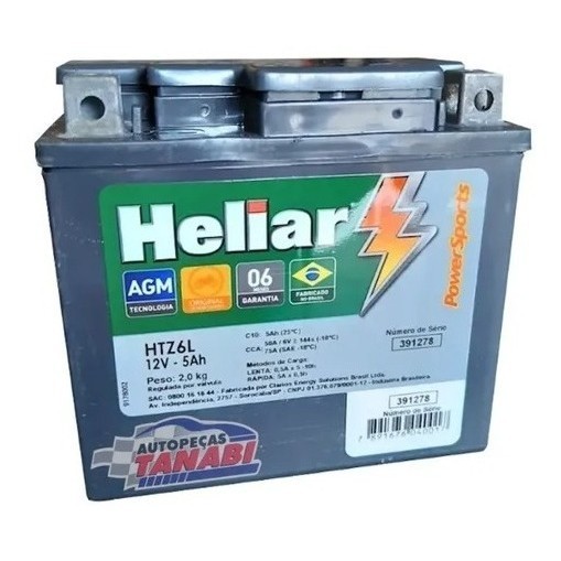 BATERIA HELIAR HTZ6L 12V 5AH PRODUTO ORIGINAL, UTILIZADO PELAS MAIS RENOMEADAS MARCAS DO MERCADO DE MOTO E AUTO-PEÇAS! -
