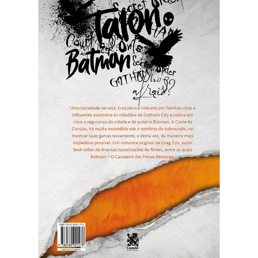 Uma sociedade secreta, traiçoeira e liderada por famílias ricas e influentes assombra os cidadãos de Gotham City e coloca em risco a segurança da cidade e do próprio Batman. A Corte das Corujas, há muito escondida sob a sombras do submundo, vai mostrar suas garras novamente, e desta vez, da maneira mais impiedosa possível. Um romance original de Greg Cox, autor best-seller de diversas novelizações de filmes, entre as quais Batman – O Cavaleiro das Trevas Ressurge. SOBRE O AUTOR GREG COX é o autor best-seller do New York Times de vários livros e contos, incluindo as adaptações oficiais de filmes como Batman: O Cavaleiro das Trevas, O Homem de Aço, Godzilla, Planeta dos Macacos: A Guerra, Motoqueiro Fantasma, O Demolidor e os três primeiros filmes de Anjos da Noite. Ele também escreveu livros e histórias baseadas em séries populares como Alias - Codinome Perigo, Buffy, a Caça-Vampiros, CSI: Investigação Criminal, Farscape, Os 4400, O Besouro Verde, Os Bibliotecários, Roswell, Star Trek, Warehouse 13, Xena: A Princesa Guerreira e Zorro. DESCRIÇÃO DO PRODUTO: ISBN13: 9786580921478 Páginas: 256 Publicação: 1ª Edição - 2023 | Camelot Editora Encadernação: Brochura Formato: 15,5 x 23,0 cm Autor: Greg Cox