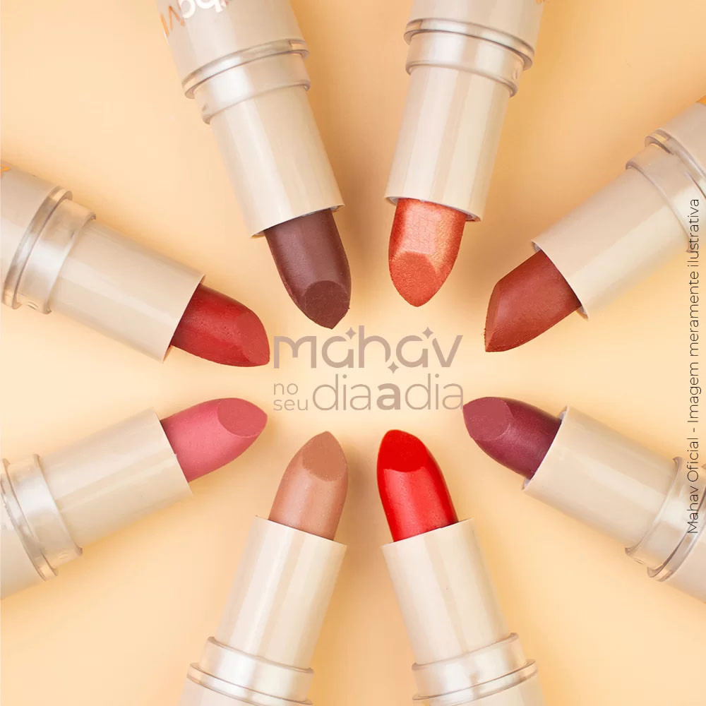 Batom Bala Bastão Dia a Dia Mahav BTD-MV Você pediu e a Mahav atendeu! Agora, a linha Dia a Dia também tem um batom queridinho pra chamar de seu! Formulado com agentes condicionantes e emolientes, que hidratam e disfarçam aquelas linhas finas ao redor e nos próprios lábios. Perfeitinho, ele tem um acabamento cremosinho in-crí-vel! A aplicabilidade é excelente: pigmenta e desliza deixando um acabamento hidratado e um aspecto muito saudável dos lábios. A cartela de cores tem 8 opções lindas. Vale conferir! Características Técnicas Referência: BTD-MV Cores: Capuccino, Cookie, Rosa Vinte, Summer,Rosa Vinte, Marsala, Nude Outono, Vermelho(Essas 8 cores sem brilho) Peso Líquido: 3,5 g Alta Pigmentação Emoliente Hidratante -------------------------------------------------------------------------------------------------------------------------- Batom Bala Bastão Cintilante Dia a Dia Shine Mahav BCD-MV Batom, o queridinho do dia a dia! O BATOM CINTILANTE DIA A DIA MAHAV foi desenvolvido com agentes emolientes, que hidratam e disfarçam aquelas linhas finas ao redor e nos próprios lábios. Os pigmentos cintilantes intensos estão super em alta e oferecem um acabamento especial em todas as cores, proporcionando um resultado iluminado e muito sofisticado. Características Técnicas Referência: BCD-MV Cores: Vintage Shine, Pink Shine, Lavanda Shine, Bronze Shine ,Cobre Shine, Malva Shine, Rosê Shine, Red Shine Peso Líquido: 3,5 g Alta Pigmentação Emoliente Hidratante Vegano Cruelty-free -------------------------------------------------------------------------------------------------------------------- Dicas de Uso Aplique uma camada do seu batom nos lábios superiores e inferiores. Guarde sempre seu batom bem fechado, longe de luz e calor excessivos. ✨ Dicas importantes: As fotos foram tiradas com iluminação profissional e modelo maquiada. A cor do produto pode variar de acordo com a tela do seu celular/computador e a luz ambiente. ✨mais atenção: O efeito nos lábios pode ser diferente em cada pessoa, dependendo do tom de pele e da forma de aplicação. As imagens servem apenas como referência de uso.