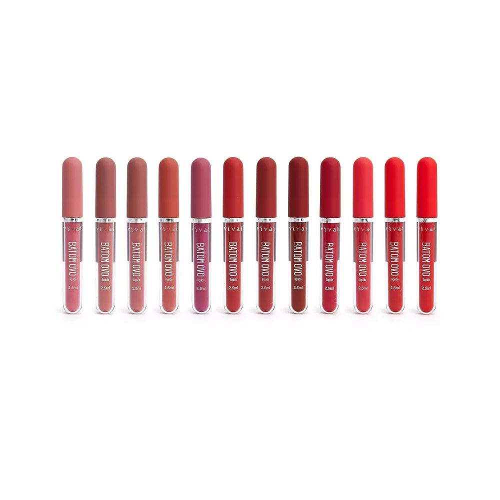 Batom Líquido Matte Ovo com 12 Cores Lindas Vivai (novo modelo)