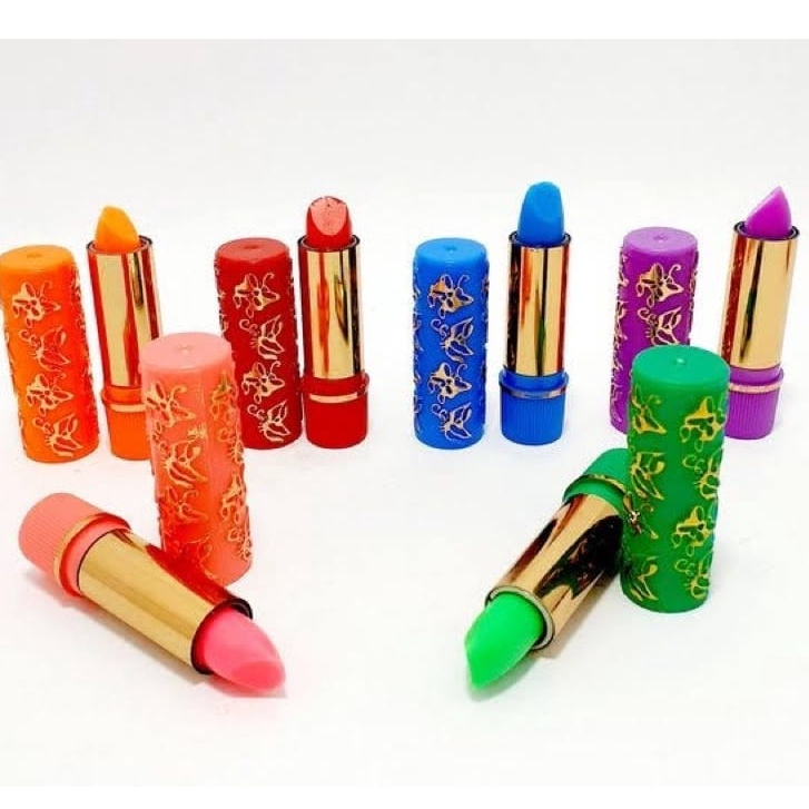 Batom Mágico 24 Horas Longa Duração Maquiagem Um batom colorido que deixa a boca rosada com aspecto coradinho e natural. Possuem alta duração, e sua cor muda após a aplicação, tendendo a suavizar com o passar do tempo. Perfeito para compor uma make mais clássica e natural, como também com aplicação de algumas camadas permite uma cobertura alta e cor intensa. Você vai amar. COMO USAR: Aplique sobre os lábios limpos, distribuindo uniformemente de acordo com a sua preferência. Para um efeito degradê, aplique apenas no centro dos lábios e espalhe com os dedos ou se preferir, aplique um pouco de batom na ponta dos dedos e distribua sobre os lábios para deixar um efeito ainda mais natural. Composição: Ozocerite, Bees Wax, Microcrystalline Wax, Mineral Oil, Oetyl Palmitale, Squalane, Lanolin, Methyl Paraben, Propyl Paraben, Bht e também pode conter CI 15850, CI 73360, CI 15880, CI 77491, CI 19140, CI 45380, CI 75470, CI 45410, CI 77891, CI 16035, CI 77499, CI77742. COMTEM 1 UNIDADE Conteúdo: 3,8 g. Tamanho: 7,3 cm. Data de Validade 30/05/2026