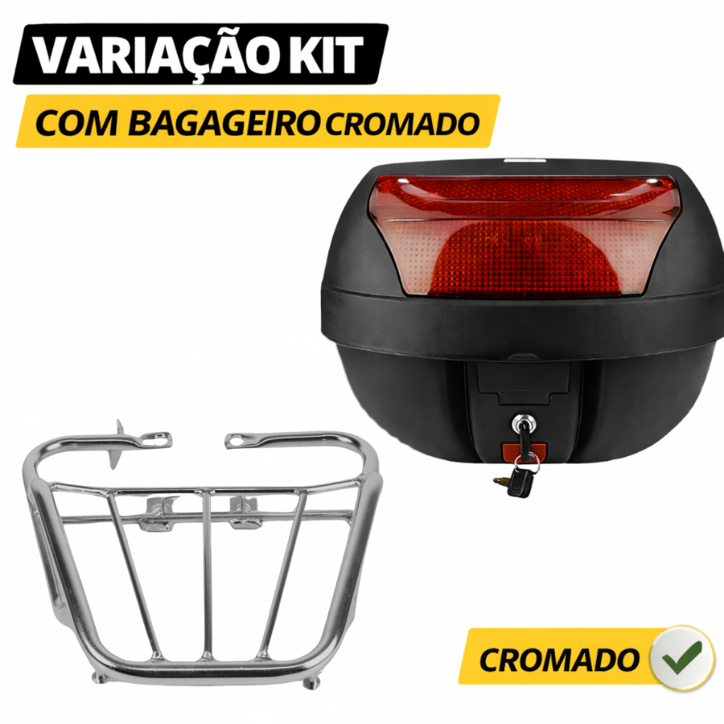 Baú 28L Pro Tork ou Bagageiro Titan 150 2004 a 2008 Cromado ou Preto com Variação