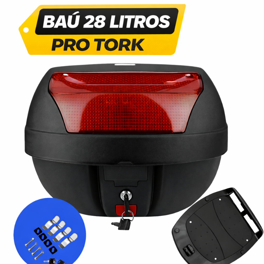 Baú 28L Pro Tork Titan 160 2016 a 2024 E ou Bagageiro Aço Maciço Preto/Cromado Variação