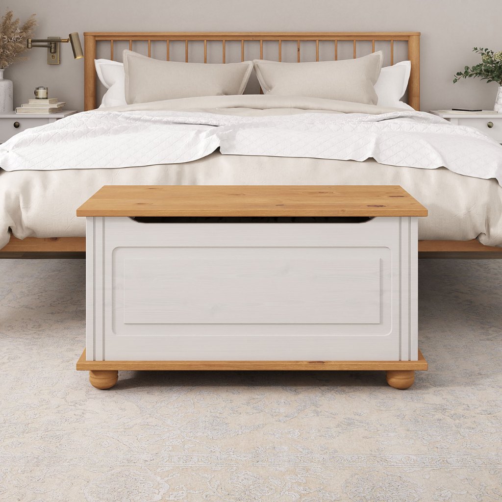 Baú Assento Organizador Madeira Maciça Bristol