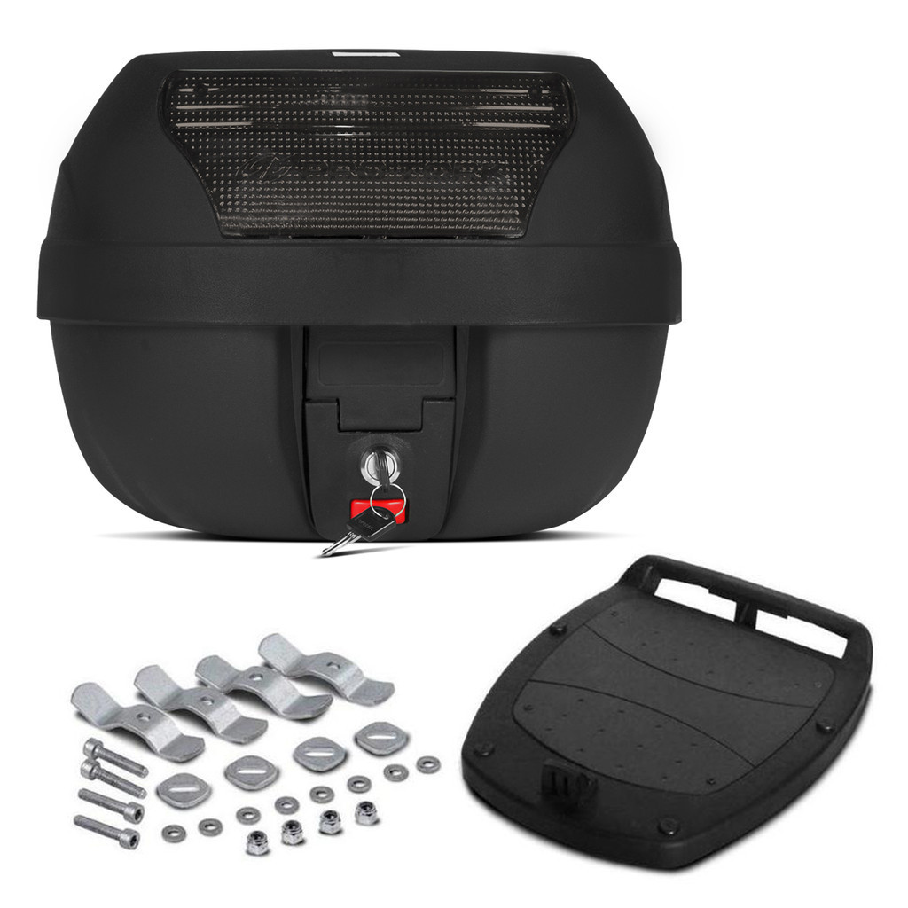 # Auto Equip # Seja bem-vindo(a)!!! --- Descrição: Baú Bauleto Moto Pro Tork Smartbox 28 Litros Preto - Pro Tork Com um sistema prático de abertura e com uma firme fixação rápida, o Baú 28 Litros Pro Tork possui um conjunto completo para que possa ser fixado ao bagageiro, esse modelo de bauleto é universal e pode ser instalado em todos os modelos de motos, o que vai ser preciso é que seja adquirido o bagageiro em aço específico para sua moto. Especificações Técnicas - Marca: Pro Tork; - Modelo: 28 Litros; - Fabricado em injeção PP (polipropileno) de alta qualidade; - Refletores disponíveis nas cores: Vermelho, Cristal e Fumê; - Capacidade: 28 litros (1 capacete e uma capa de chuva); - Fechadura com Chave (completa); - Lente com Defletor traseiro; - Acompanha Parafusos e Base para a fixação do baú; - Recomenda se instalar o produto no bagageiro em aço; - Peso Máximo suportado de 3kg. Conteúdo da Embalagem - 01 Bauleto - Conjunto de Fixação Importante - Garantia de 03 meses; - Pedidos aprovados até 12h00 de segunda a sexta será enviada no mesmo dia; - Enviamos em até 24h úteis; - A embalagem pode variar de acordo com o estoque do fabricante; - Imagens meramente ilustrativas; - A cor do produto pode variar de acordo com a tela do seu smartphone ou computador; - Utilize o campo de "Perguntas e respostas" e esclareça suas dúvidas com nosso suporte técnico.
