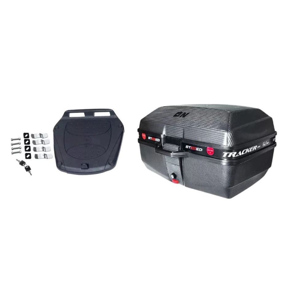 Baú Bauleto Tracker Stoned 52 Litros Para 2 Capacetes + Base Fixadora