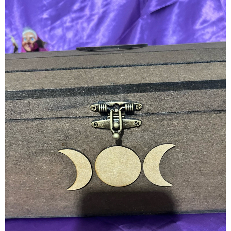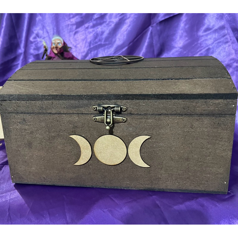 BÁU DA BRUXA GRANDE BAU UTENSÍLIOS DA BRUXA MDF PRODUTOR ARTESANAL, *****LEIA COM ATENÇÃO A DESCRIÇÃO E DIMENSÕES DO PRODUTO PARA VERIFICAR SE ATENDE SUA NECESSIDADE **** Baú da Bruxa para utensílios Descrição •Báu mdf 27X21x14 (27cm comprimentoX21cm larguraX 14cm altura a contar da curva do Báu) •Pintado a mão •decorado com lua tríplice e pentagrama 4 divisórias de encaixe que vão sem colar para que seja ajustada conforme a necessidade ****Por se tratar de produto feito de madeira pode ter defeitos, imperfeições e variações de cor conforme pintura e madeira **** NOSSOS PRODUTOS PODEM APRESENTAR FORMAS, CORES E PESOS DIFERENTES, VISTO QUE SÃO TOTALMENTE ARTESANAIS PRODUZIDOS E EMBALADOS UM A UM. *NOSSOS PRODUTOS SÃO FEITOS EM AMBIENTE ENERGETICAMENTE PROTEGIDO E EQUILIBRADO, EMBALADOS E LACRADOS COM MAGIA, PARA PROTEÇÃO DE ENERGIAS EXTERNAS E PARA QUE CONECTE SOMENTE COM A SUA ENERGIA QUANDO ABERTO